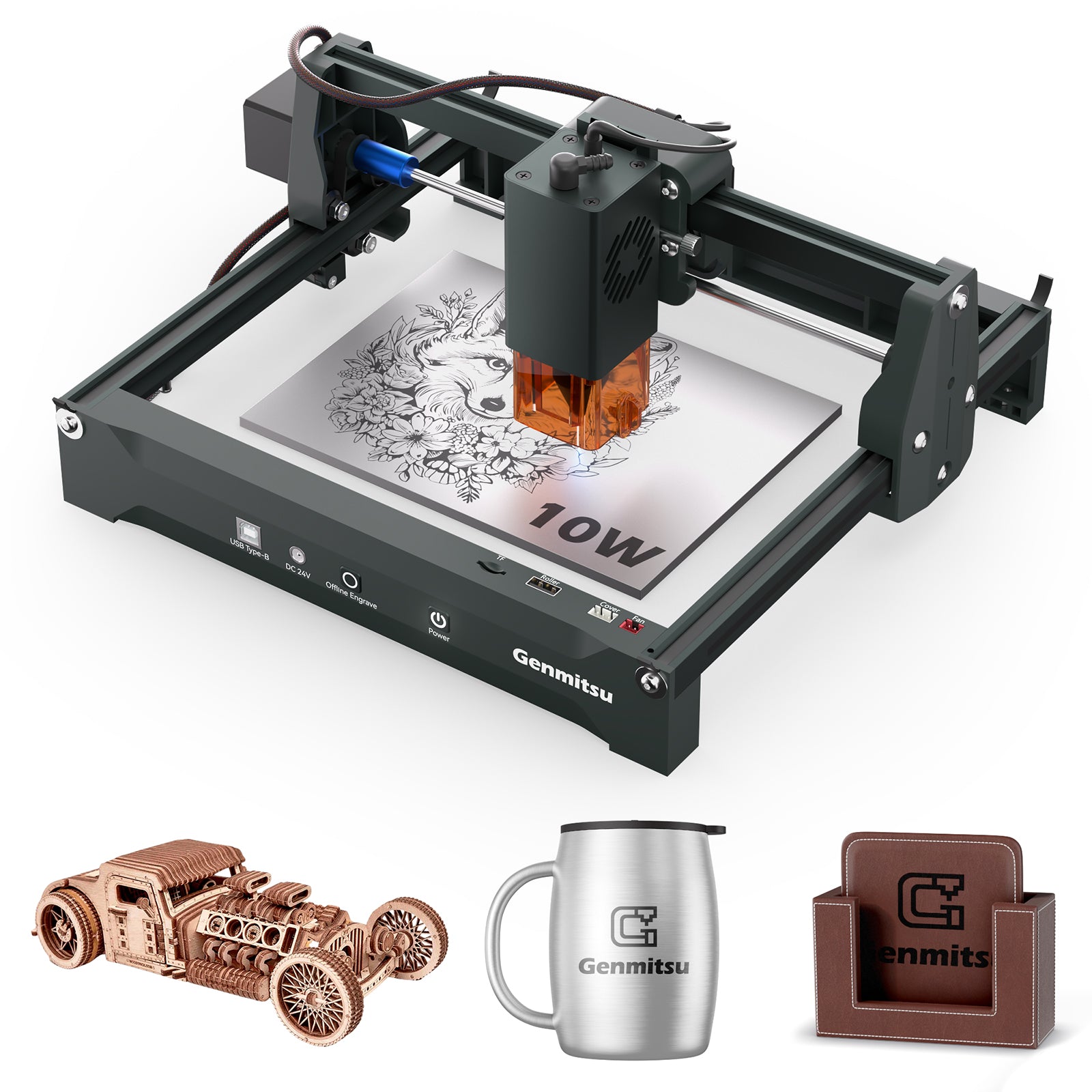 The Genmitsu Kortek compact and portable laser engraver offers a spacious 200 x 150 mm engraving area with high-speed performance up to 5000 mm/min and precision down to 0.01 mm, perfect for both home DIY and small business use. Support Genmitsu APP, you can use a phone or a laptop to control it. Ready to use right out of the box, it can be combined with a variety of accessories to create on multitude of materials. Laser Safety class 1, tilt stop protection, emergency safety switch..
