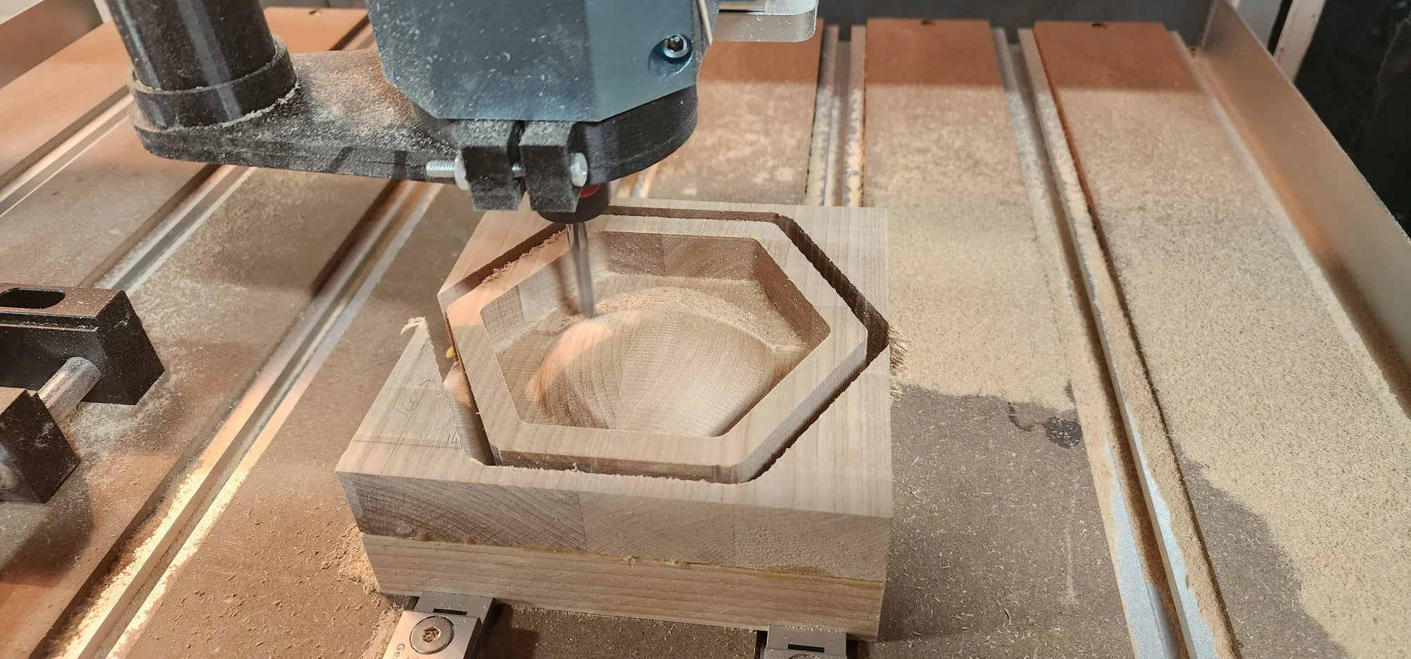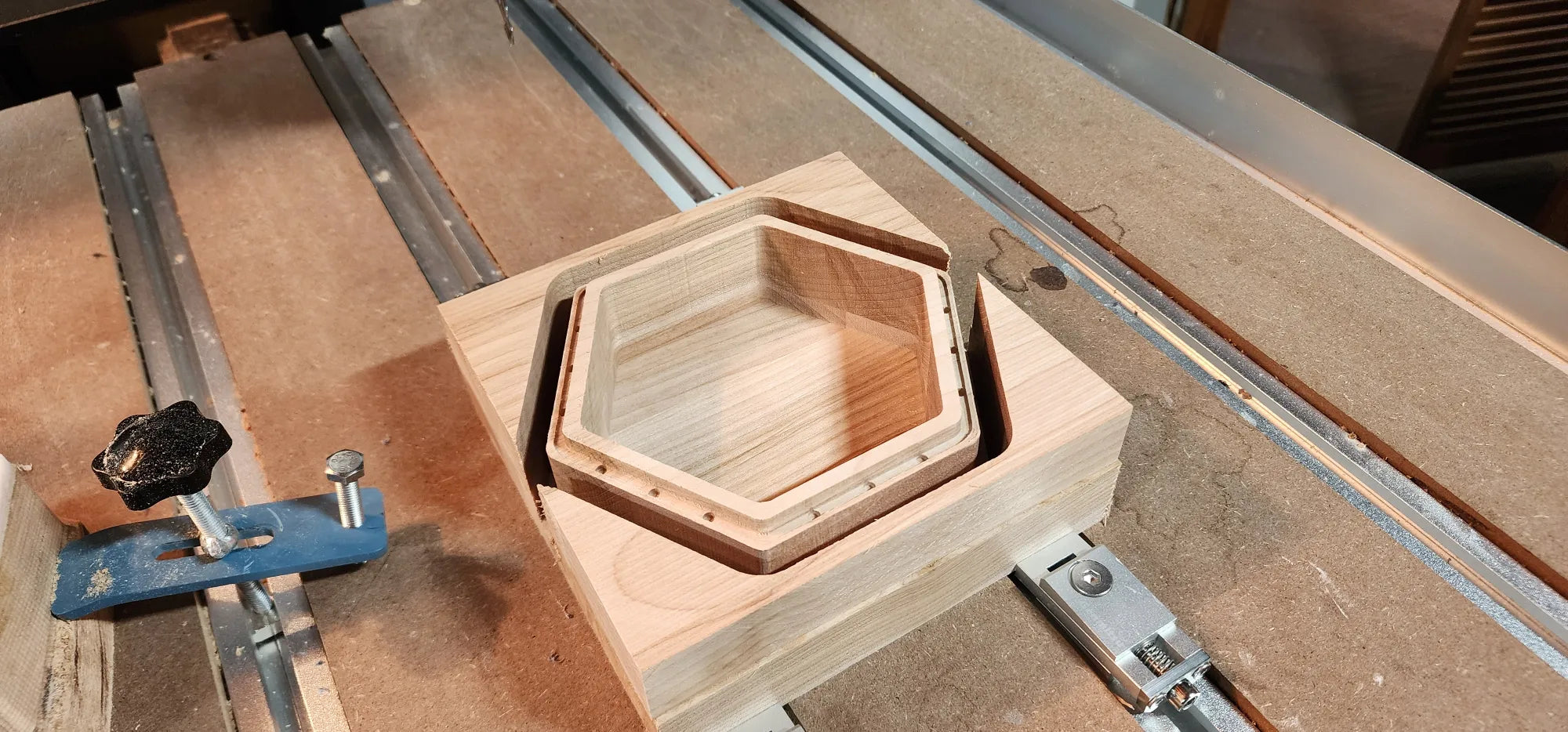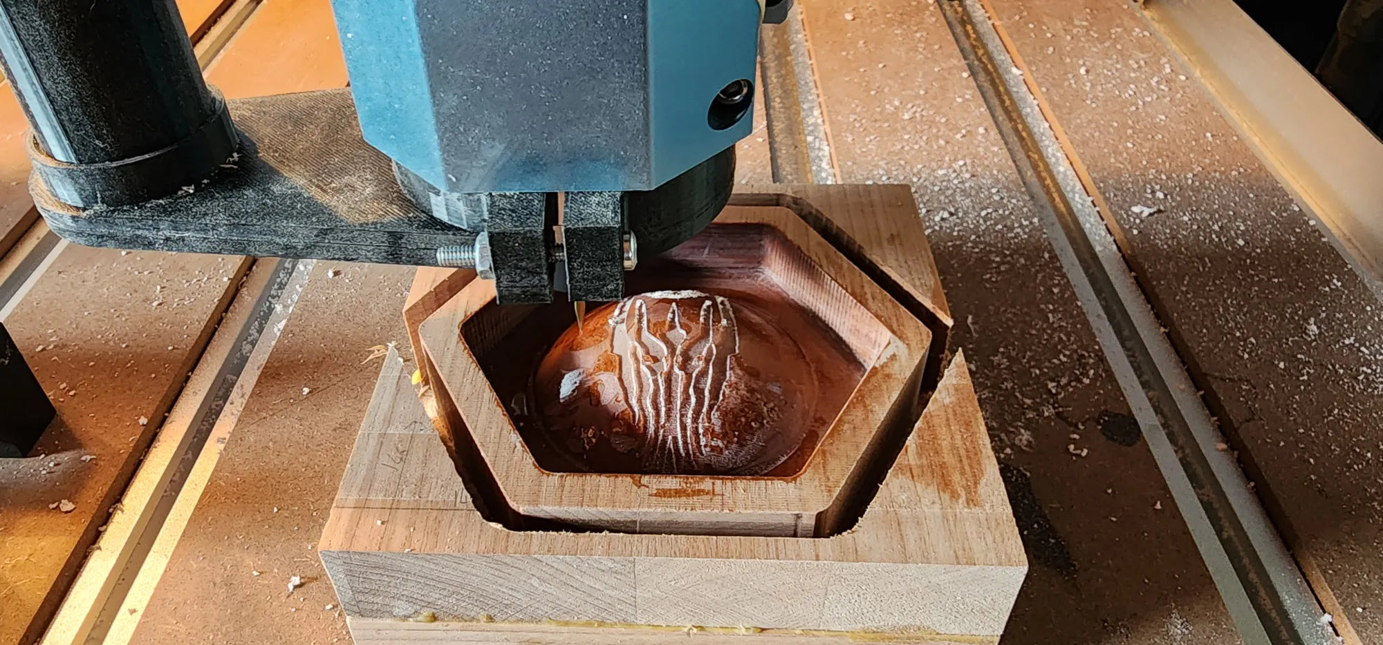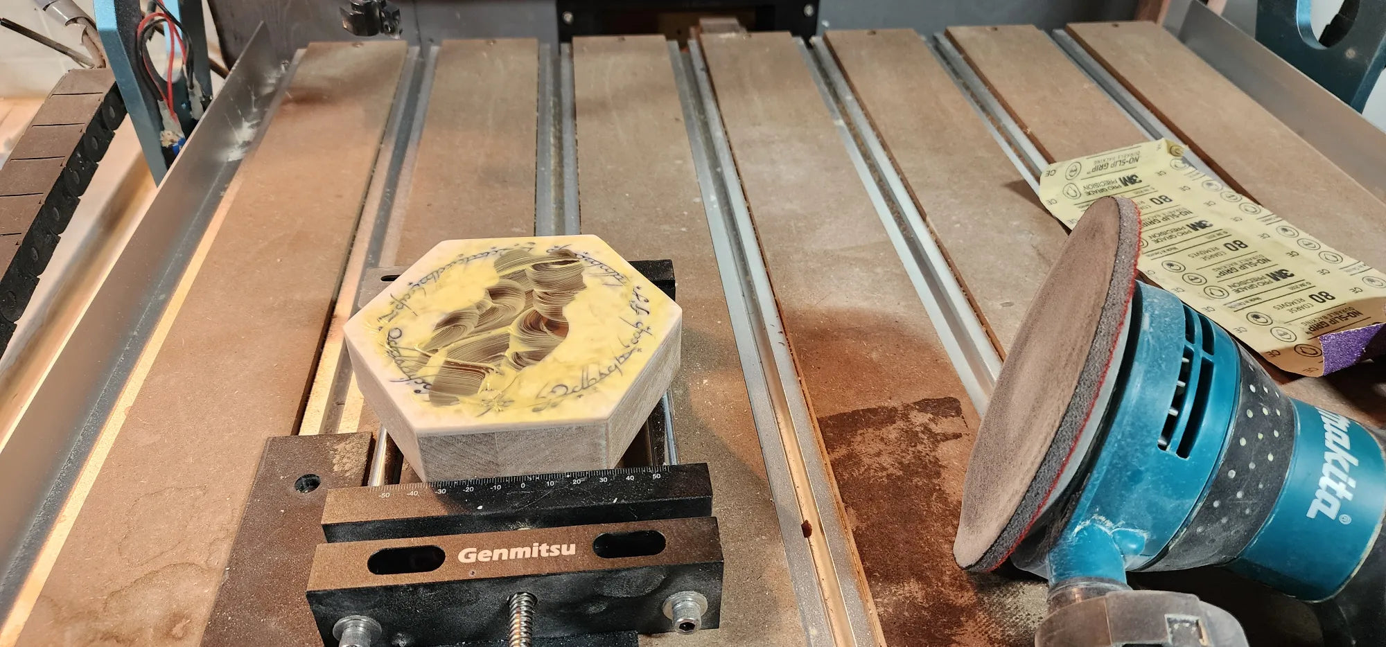 Handcrafted with care and forged from the finest wood I could find, this box was created as a tribute, a custom gift for a friend whose heart beats to the rhythm of dice rolls and heroic tales. More than a simple container, this hexagonal artifact draws inspiration from the worlds of Tolkien and the mythos of Dungeons & Dragons. The exterior bears the mark of the Professor himself, while the inside reveals a burning sigil, the Eye of Sauron, ever watchful. Surrounding it, elvish script whispers forgotten enchantments, as if echoing the One Ring’s curse. Within, crimson dice await their fate, ready to decide the destiny of heroes and villains alike. This isn’t just a dice box, it’s a vessel of storytelling, forged for the Dungeon Master who brings entire worlds to life.